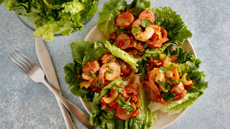 Andouille Sausage & Cajun Shrimp Lettuce Wraps