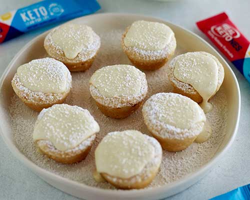 When cool, spoon the cream into the crusts. Place in the fridge to chill for at least 1 hour, then garnish with optional sifted Keto confectioners’ sweetener.