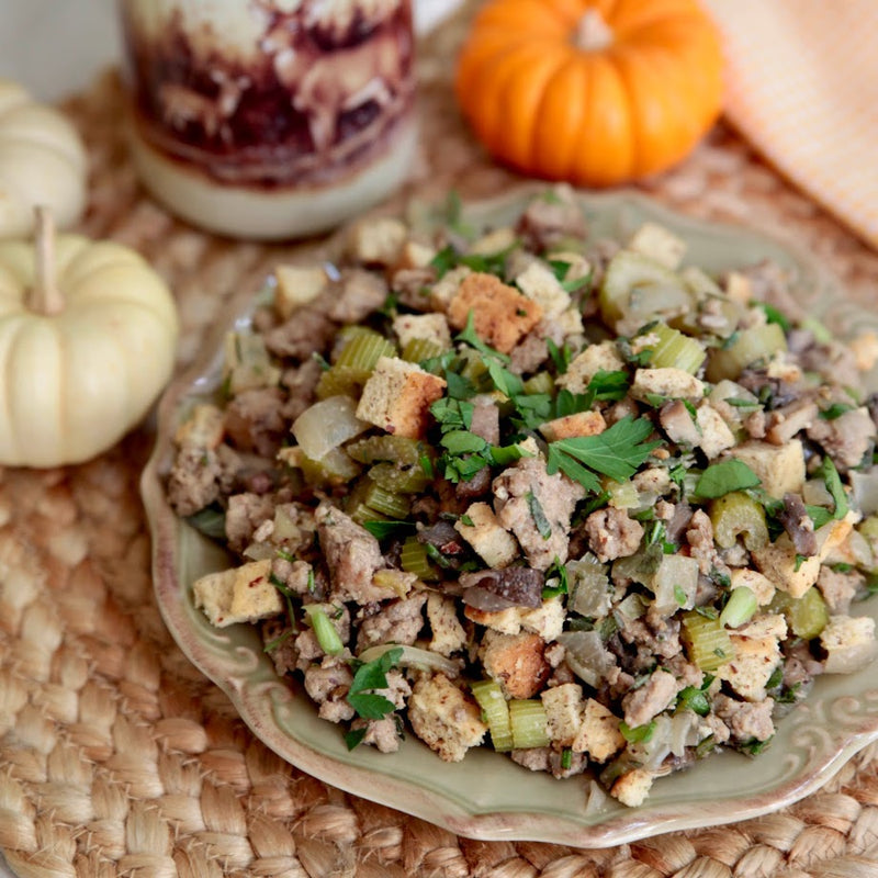 Remove from the oven and allow to cool before cubing in small squares to toss in your sausage stuffing (you can bake your bread up to 2 days before using, just store in a glass container until ready to use).